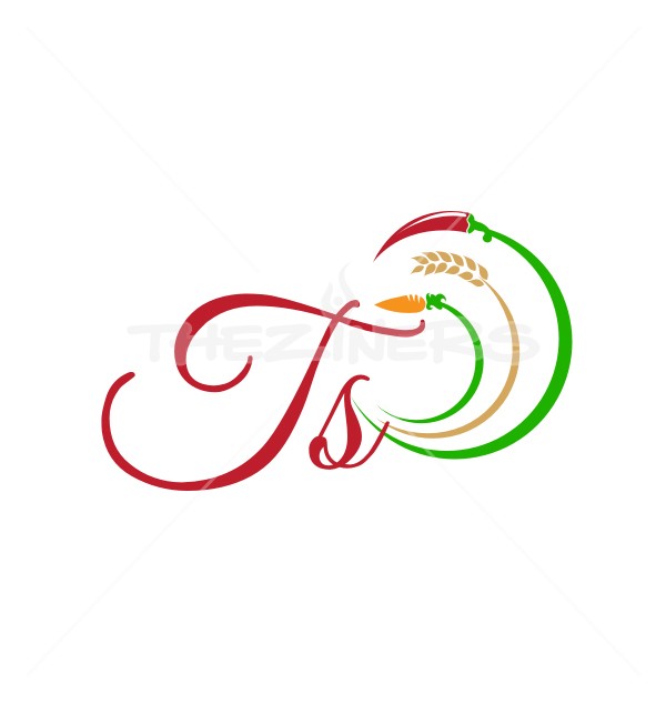 TS letter, T, S, Initials, Fruits, Food, Vegetables, Carrot, Chilli, Circle, Wheat - Category